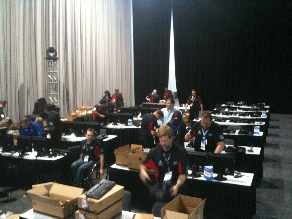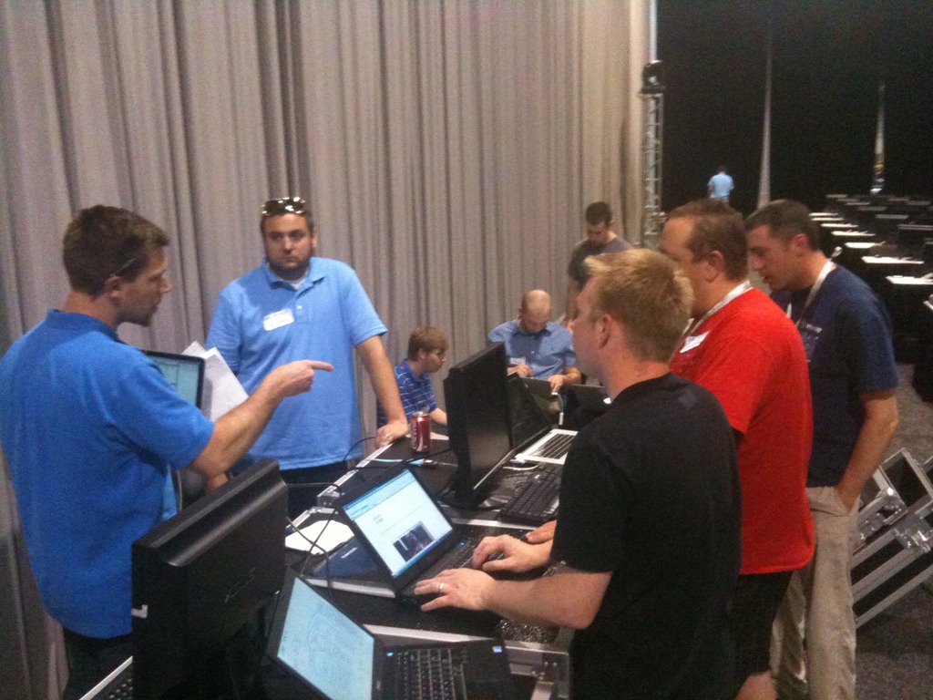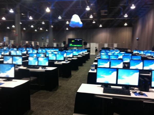 Here is a little “behind the scenes” stuff.  While we didn’t have to setup the dual monitors per IMG_0952station (Vegas Union Rules) we did have to setup each Wyse terminal.  By the way a little known fact, it takes 5min’s and 40 seconds to re-image a Wyse Terminal with a USB Stick.  We had 200 terminals….we did this 3 times in 24 hour period so we got REALLY good at it !!  Each table was setup with 2 sets of dual-monitors as well as 2(ea) Wyse Stations.  Each of these connected back to a dedicated T3 connection to our Vblock in North Carolina.  We did have 4(ea) “backup” systems in the #vlab just in case we ran into any connectivity issues but thankfully we didn’t need them.  Unfortunately we had to work through some opening days gremlins on Monday but by that afternoon everything was running like a well oiled machine.  In fact, Tuesday, Wednesday and Thursday was just AWESOME.  The #vLab practically ran itself.  I’m not saying we didn’t have issues with individual labs from time to time, but for the  most part it was few and far between.  We received some great, positive feedback from those that sat through the labs and in the greatest compliment you can get, we had a lot that went through almost all of them.
