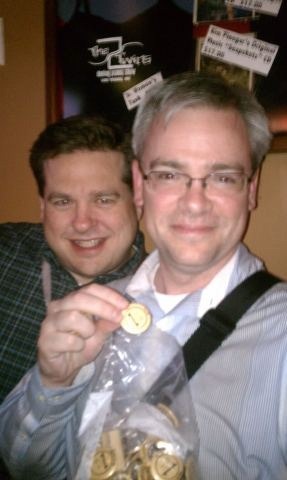 By the way, I did take advantage of being at EMC World to network with some really cool people.IMG_0961  I’ve been truly impressed with EMC’s embracing of Social Media.  “Social City/Bloggers Lounge” was so impressive.  They had a full time coffee barista onsite as well as nice comfortable area to sit and chat with fellow Social Media people.  It was great to have just a quiet place to hang out and catch up on what people are working on and meet people that I normally only communicate with on Twitter.  Special thanks for @KeithNorbie for getting me into the “EMC World Alumni Area” to sneak some Diet Coke out 🙂  Also, a HUGE shout out to Bas Raayman who setup a great “Storagebeers/vBeers” event at Harrah’s and especially @storagestaffing for picking up the tab!!  I was able to finally get my hands on the famous “FCoTR” button from @SFoskett (Thanks to @Gminks for taking the picture – you RAWK 🙂 ).  It was just great being able to meet up with so many people.  Also that night @Banksek and I were able to get into the @Brocade party over at the Marquee at the Cosmopolitan hotel.  Their party was just off the hook crazy and I can’t thank @CharlesHood enough for the personal invite.  It was a great opportunity to just let off some steam and have a great time.