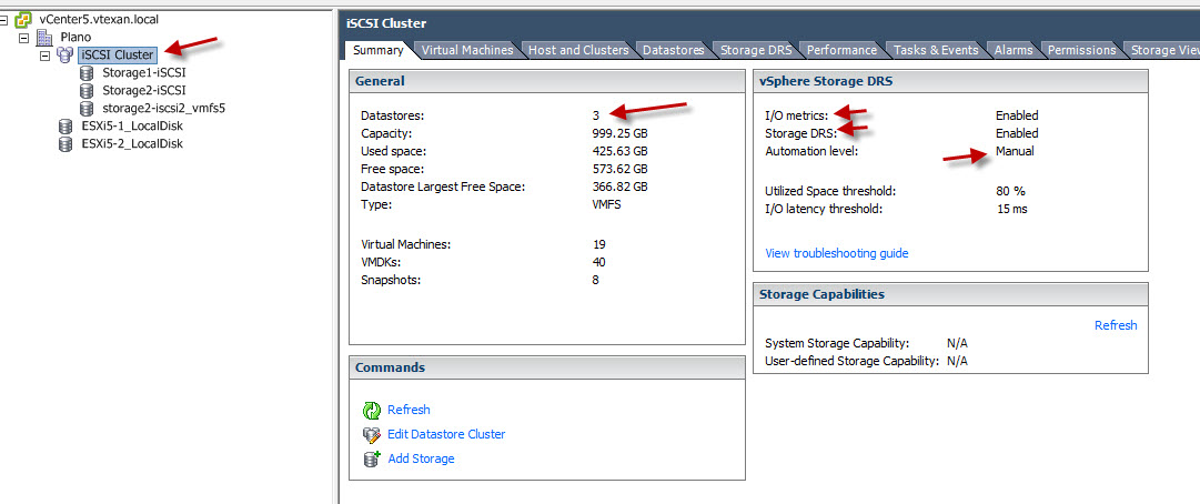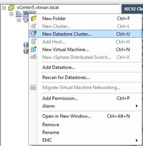 Another cool feature is Storage DRS or Storage Clusters and it ROCKS. Essentially Storage DRS is just like Host DRS. In vSphere 5 SDRS (StorageDRS) is called a Datastore Cluster. It’s pretty easy to setup and get up and running: