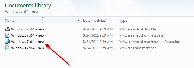 14) – once it’s good to go, open up Windows Explorer and go to the Virtual Machine folder (its typically in your documents folder) – then open up the new VM Folder you just created, copy/paste the new VMX file into the old folder location
