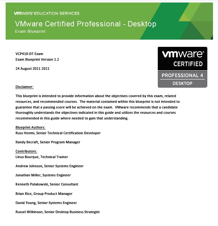 you to have spent a good amount of time in the View Admin interface and spent time troubleshooting common issues. The goodnews is, I’ve installed View 4.x a couple of times as well as View 5 a couple of times in the last few months so I sort of feel like I really had my hands around it. The test is pretty straight forward. I would HIGHLY recommend you just follow the VMware VCA-DT Blueprint and do everything it tells you to do. Especially the ThinApp stuff. OH MAN did it seem I had a lot of ThinApp questions. The problem was, I haven’t messed with it to much yet. I plan on fixing that really soon in preparation for VCP4-DT.