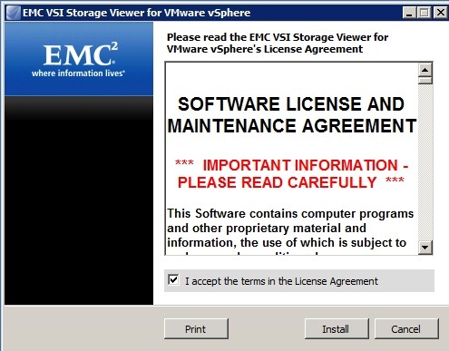 I’ve broken this install guide in to 2 parts. The first part is a screen shot by screen shot install of the Storage Viewer. Honestly, it’s pretty straight forward. It’s pretty much Next, Next, Next finish but just in case you wanted to see what was involved I captured the screen shots of it. I also take you through how to enter the credentials you need to allow it to communicate to the EMC arrays.