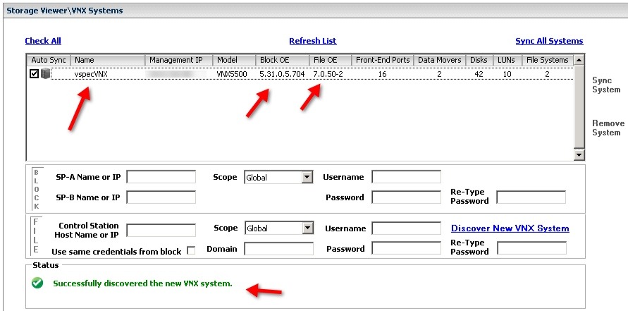 5. If you put everything in correctly, you will see your VNX info populated as well as a green message saying its successful.
