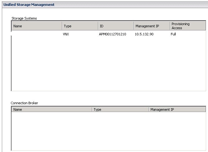 3. Here is a list of things that USM can manage/control etc. Notice that you can add more EMC storage systems (if you have more than 1). You will also notice that the EMC VNXe is gray’d out, that’s because we didn’t install the Unisphere CLI program. Once you install it, that will be selectable. Also you will see VMware View Manager and XenDesktop Controller. Those are future blogs so check back soon on how to set that up and what sort of features and functions you can get out of them.