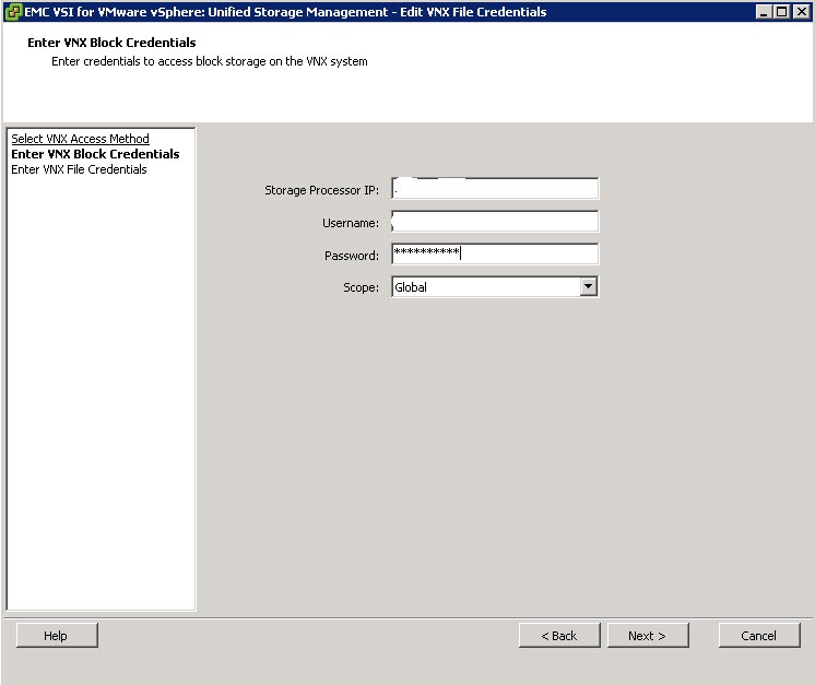 13.Enter your VNX credentials. If you don’t remember, just open up Unisphere and you will see the IP address of the SP’s and Control station