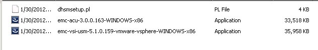 You can find the software on PowerLink under Support- Software Downloads and Licenses – Downloads T-Z – Virtual Storage Integrator. Scroll down to VSI Unified Storage Management and grab the ZIP file with the date of Jan 13, 2012. It should be the 5.1 version of the USM. As it implies, that is a zip’d up file that has the following 3 files listed: