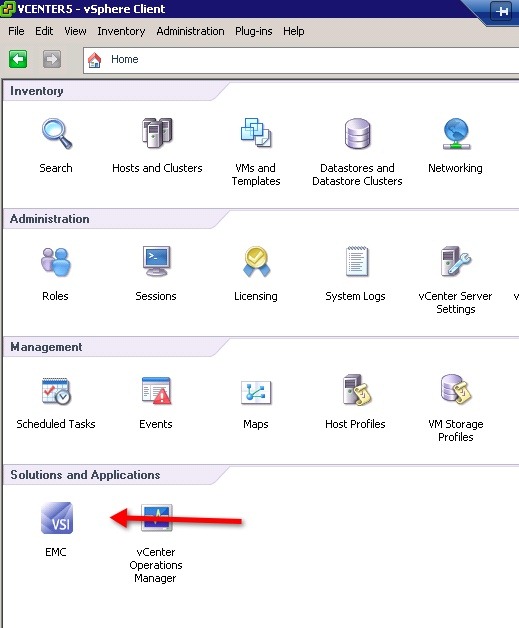 1. First, go into vSphere Client – and click on the EMC VSI Plugin to get it setup.