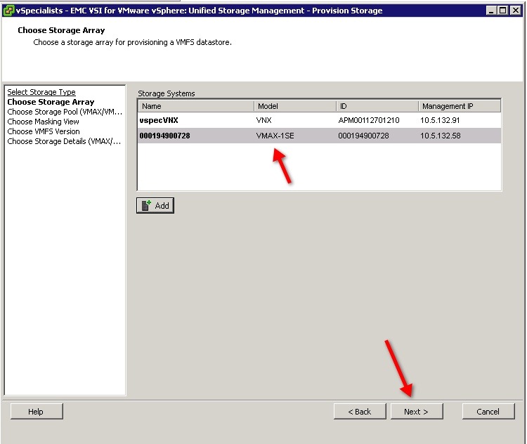 4. Check out the new EMC VMAX/VMAXe option. – Select it and click next